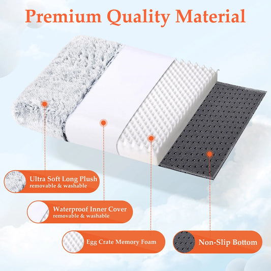 Dog Bed for Large Dogs, Washable Egg Crate Memory Foam Orthopedic Cozy Soft Long Plush Calming Pet Bed for Large Medium Size Dogs Crate, 36"X28", Gray